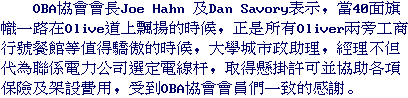 "When we hang the banners on Olive, we hope that all of the businesses and residents along Olive Blvd. will share in the pride of our success," added OBA co-chair, Dan Savory.