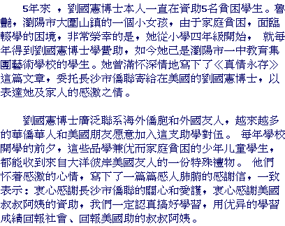 China Hope Project Thank You letter from Hunan, China