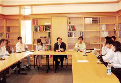 應邀參加聖路易華盛頓大學首屆國際能源與環境高峰論壇會議,北京清華大學校長顧秉林五月四日(週日)抵達華大校園,在華大生物科技系系主任殷起彭教授陪同下參觀華大生物科技系,同時與30位目前在華大任職教授或擔任博士後之清華大學畢業校友座談。
