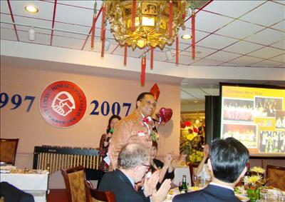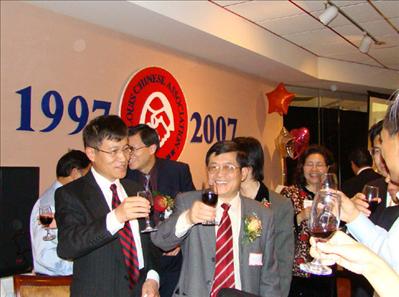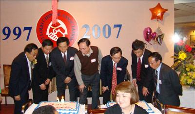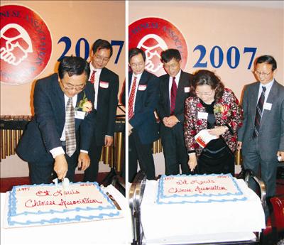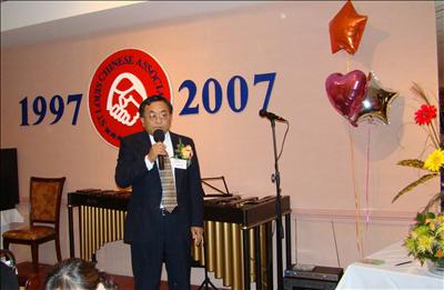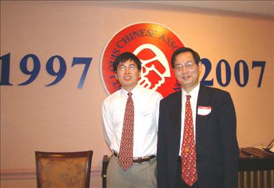 【時報訊】聖路易地區最大之華人社團「聖路易中國人協會」,11月10日晚間六時半,在聖市京園餐廳隆重舉行創會十周年大慶,近200位貴賓與會,自1997年成立以來,9位歷屆會長全員到齊。十年有成,中國駐芝加哥總領事館儲茂明副總領事親率四位領事參贊前來道賀,聖路易郡郡長Charlie Dooley應邀致詞,頒訂文告,宣佈11月10日為聖路易「中國人協會日」,密蘇里州植物園園長、中國國家科學院外籍院士Peter Raven博士帶領全場來賓舉杯祝賀,並由聖路易中國人協會創會會長章沛及現任會長劉國憲教授分別切開生日蛋糕,現場氣氛高昂,在主持人前會長高桐律師率領下,一起祝願中國人協會百尺竿頭,再接再厲,邁向更璀燦的下一個十周年。