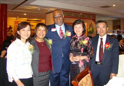 聖路易中國人協會十周年慶貴賓,左起Morris Johnson校長、戴慶齡博士、Charlie Dooley郡郡長、儲茂明副總領事、Peter Raven園長夫婦及劉國憲會長