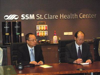 ST. LOUIS (May 26, 2010) - SSM St. Clare Health Center hosted 14 Chinese delegation representatives yesterday in an effort to help their country learn more about health care facilities in the United States and key ways to enhance quality care. The delegation, from the Shenzhen Municipality, included professionals from industries such as government, electronics, engineering and finance.
