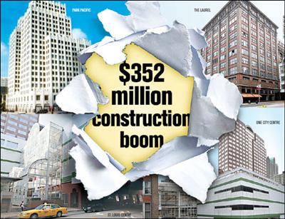 Combined, the projects will create more than 1,600 construction jobs and set in motionthe biggest construction boom downtown has seen in several years. "We do businessall over the country, and there are few, if any, places that are taking on the size andcomplexity of these deals," said Zack Boyers, CEO of St. Louis-based U.S. BancorpCommunity Development Corp. His organization invested in the new redevelopmentplans for the The Laurel, One City Centre and St. Louis Centre. |