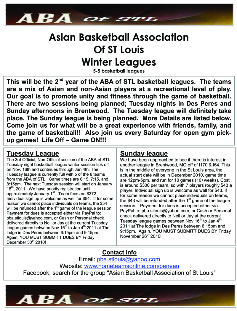 Asian Basketball Association Of St. Louis Winter Leagues