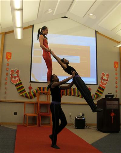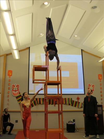 | 雜技團演員為韋伯斯特大學師生展是雜技技能 |