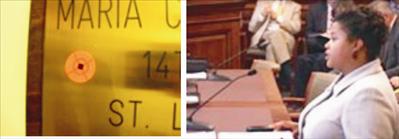 The Columbia Daily Tribune is reporting that someone peppered offices in the Capitol building with rifle cross hair stickers. Several senators, including University City's Sen. Maria Chappelle-Nadal, were targeted.