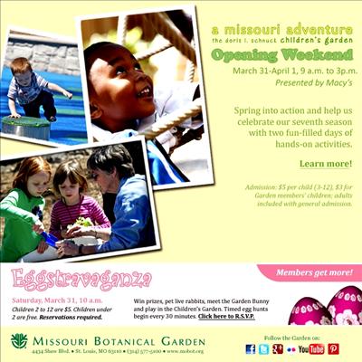 Missouri Botanical Garden Children's Garden Opening WeekendMarch 31 - April 1, 9 am - 3 pm, Presented by Macy's