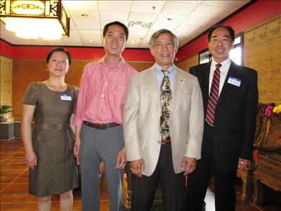 (左起)老闆林友樹夫婦、聖路易財政局局長Eugene Leung、楊氏地產公司楊興榮(Ken Yeung)合影