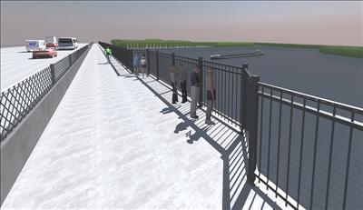 電腦模擬製成之新東向大橋旁之行人和自行車觀景道