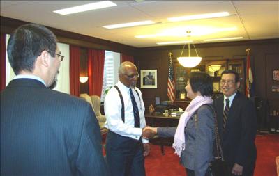 Charlie Dooley郡長在郡長辦公室接見趙國盛委員及家人