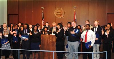 Congressman Lacy Clay swears in the 2013 Class of Missouri's 1st District Congressional Youth Cabinet at the St. Louis County Council Chambers