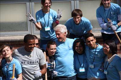 【聖路易時報訊】上週末在聖路易華盛頓大學舉行之「克林頓全球倡議」全美會議結束,4月7日克林頓總統率同各界義工赴聖路易市Gateway STEM高中作了為期一天的義工服務,克林頓總統說,美國必須在教育上注重STEM,即科學(Science),科技(Technology),工程(Engineering)和數學(Mathematics),作為國家未來發展的重心。