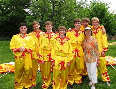 聖路易大學附中中文老師戴慶齡博士與七位參與舞龍演出的學生合影