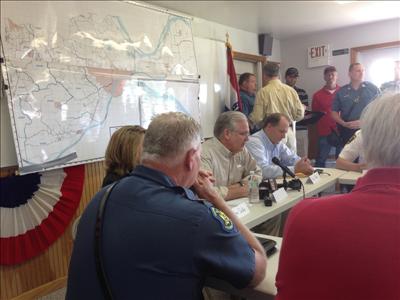 | Nixon gets an update on West Alton flooding from local officials. (Chris McDaniel, St. Louis Public Radio) |