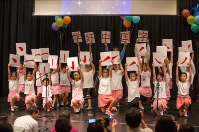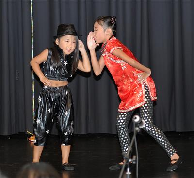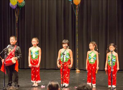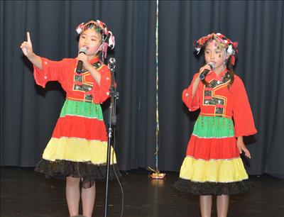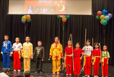 在今年暑期班里,孩子們的年齡從5歲到15歲。閻老師針對每個孩子的特質,分別為他們挑選合適的歌曲,精心安排孩子互相間的組合,使每個孩子都有演出機會,有屬於孩子自己的舞臺空間和時間,每個孩子在舞臺上都是獨一無二的天使主角,這樣的演出還要兼顧到觀眾的趣味性,所以在形式,服裝,動作等的安排上,無不費盡心機,絞盡腦汁。他們演唱的曲目都是中國全國兒童歌曲比賽獲獎歌曲 - 有上面所說的各少數民族歌曲,也有瑯瑯上口的流行歌曲,經典歌曲,鑼鼓唱等。 同時,根據每首歌曲的特點,和對孩子們”多方面思維“培養的基點,很多孩子們的演唱配有自己表演的民族舞蹈,幾位女孩都是載歌載舞。爵士舞蹈《中國娃娃》和《童心是小鳥》(Emily Xiao,Jasmine Li)中兩組小姐妹的表演令人拍手,《快樂小精靈》由Bryce Lu和Jenny Yang男女生組合的歌舞表演也十分到位,賺足了掌聲。而參加人數最多的功夫表演讓人看到了剛柔相結合的完美。每個節目的編排都能看出老師良苦用心,也能看出孩子們的刻苦努力,勤學苦練。因為是暑假,很多孩子都有回中國或外出休假的安排,不可避免地要缺課,為此,閻明老師和活動組織者王鳳仙女士想方設法安排補課,盡可能地照顧到每位同學的時間。
