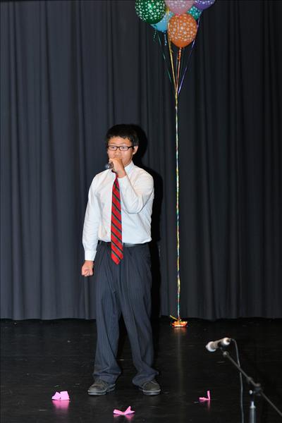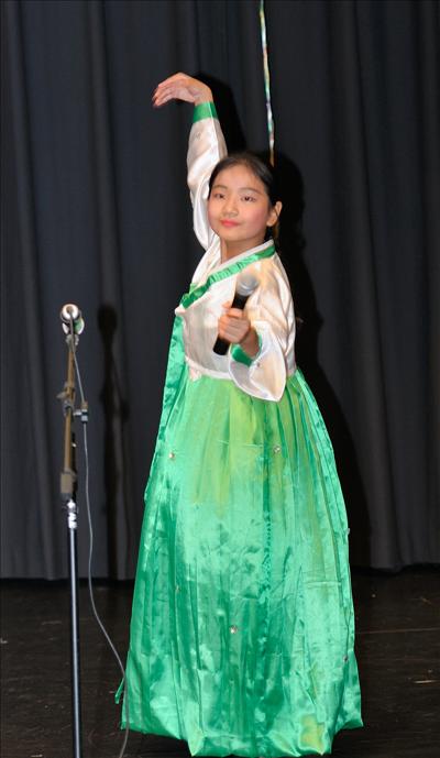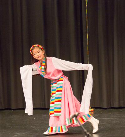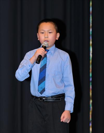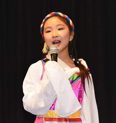 三點,演出在少年主持人Kavin Chen 和Sonya Liu親切而標準的普通話中正式開始。大小全體孩子們手舉點橫豎捺撇鉤等中文筆畫和中國字的牌子,齊聲唱著《練字謠》的歌聲,依次上場。孩子們用字正腔圓的普通話表達他們要“寫好中國字,從小勤用功”。隨後的十多個節目,是孩子們分別上臺演出,形式多樣,有獨唱《做個小孩不容易》(Ming Lei),《桑塔露琪亞》(Billy An),《我愛你塞北的雪》(Hanlu Jin)等,男女生表演唱《更上一層樓》(Joy Zou, Kiki Zhang, Alen Ye, Catherine Liao 和Sara Liao),有武術表演相伴的形式新穎的《聞雞起舞》(Rachel Yue, Gong Fu Ban),有漢族的《太陽雨》(Nian Zhu 和Grace Lin),《爸爸的雪花》(Katie Xiao, Cindy Wang)也有藏族《卓瑪》 (Cynthia Liu),朝鮮族《幸福像金達萊》 (Hanna Gao),新疆族《刀郎女孩》(Mary Xu) 和 傈族《跳月歌》 (Lucy Yue) 等多個民族的歌曲,有的孩子是剛剛開始和閻老師學歌的,但演唱的高難度《祖國,慈祥的母親》(Yanshuo Zhang) 和《我愛你,塞北的雪》(Hanlu Jin)是可圈可點,也有的孩子已經學唱歌3-4年了,像《可可西里》的KatieXu, 聲音清澈純凈,頗有天籟之感。無論新老學生大家都非常認真。最後的青春舞曲是全體上場的節目,鮮艷的服裝,天真的笑臉,歡快的節奏,給演出劃上了一個圓滿的句號。看完演出,聖路易兒童合唱團團長Barbara Berner 女士連聲稱贊孩子們的演出水平,並表示以後有機會的話,可以雙方進行演唱合作交流。