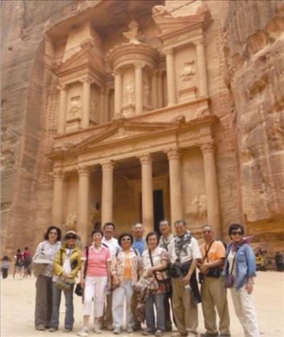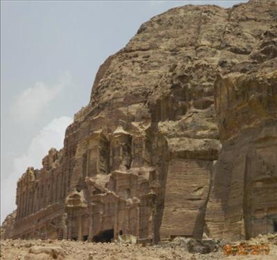 寶藏宮的左右邊都有不同的景點﹐我們的午餐店在右邊﹐所以我們選了向右邊走。兩邊岩石上都鑿有洞穴或小型宮殿﹐導遊說這都是比較富有的拿巴庭人的居所或祀奉之處。我們繼續走到預定的餐廳用午餐﹐是傳統式的中東餐。由於天氣炎熱﹐時間不夠的關係﹐我們不能參觀另一半城市。在回程中﹐因為昨天的西乃山之行消耗不少體力﹐要保留體力應付接下來近十天的以色列之旅﹐有六人決定騎驢回到寶藏宮。我也騎一次驢﹐體驗一下。結果我這匹驢很頑皮﹐老是和別的驢去親熱或競走﹐把我這身老骨頭顛得混身不是味﹐真後悔騎這趟驢。到了寶藏宮﹐有十位團友選乘馬車回到出口﹐我和徐健牧師共乘一輛﹐穿過峽谷﹐又再一次欣賞它的巧奪天工的奇景。
