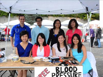 聖路易斯中國免費保健診所攤位,為中西友人免費量血壓