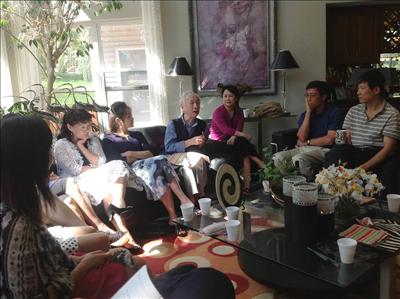 三,四個小時很快在談天說地,讀者與黃先生的互動中過去了。一個小小的讀書會,兩代文化人在異國的溝通。我們領略了雜文,打開了一個新的視野,雜文家則找到了知音。在接下來的幾天裡,大家在電子郵件,臉書上留言發表感想,交換詩作。黃先生要每一個人寫下自己的中文名字,新書到手時,他要簽書送到美國給大家。感謝黃老!(宗吾冰)