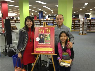 聖路易張志忠全家與譚恩美攝於讀者會現場