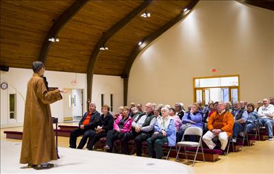 天主教St Bernadette 教堂銀髮教友共四十人,於三月十三日,特別由Linda Koenig帶領,來寺認識佛教,由覺皇法師介紹佛教。