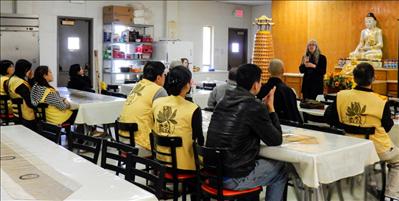 | 為提昇大眾對水資源的重視,美國大聖路易佛教聯會特別於世界水資源日三月二十二日,假聖路易佛光山舉行「入世佛教-世界水資源日論壇。圖為聖路易霍特金斯溪流隊(Watkins Creek Stream Team)成員Claire L. Schosser講說「城市河川的生命」。 |