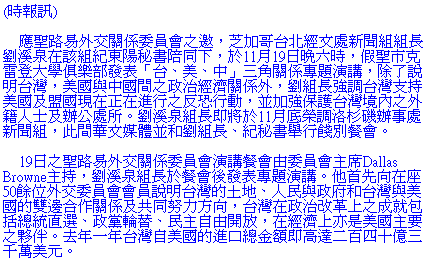 Charles Liu from TECO in Chicago lectured at the St. Louis Committee on Foreign Relations