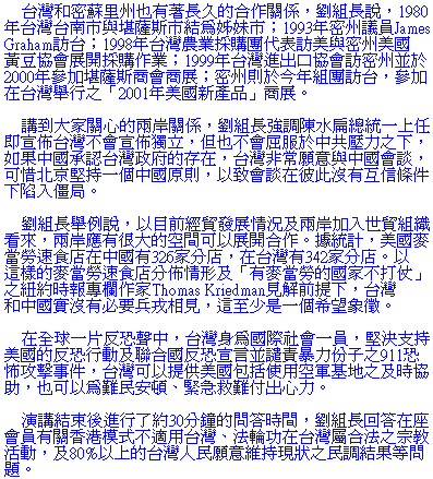 Macs, Taiwanˇ¦s policies of engaging economic and