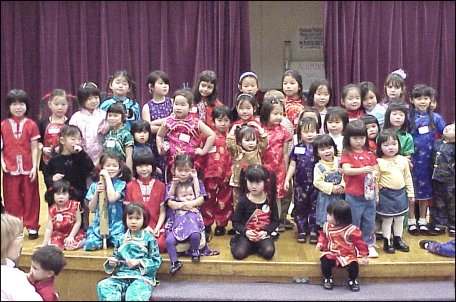 We are all masters at keeping busy. It is the American way of life. In the midst of hectic schedules designed with good intentions to enrich our children's experiences, and therefore their lives, one more event somehow gets added to the list by FCC (Families With Children From China) households. Each year FCC families make time to celebrate Chinese New Year together. What's more, it's relatively easy fun to plan since history dictates the theme. Whether it is the year of the dragon, the snake or horse, exciting activities for children are always available. This opportunity for cultural enrichment is actually taken seriously; families make the time to attend FCC's Chinese New Year party. Celebrating their children's culture is important to family life as evidenced by the people, young and old, who participated this year.