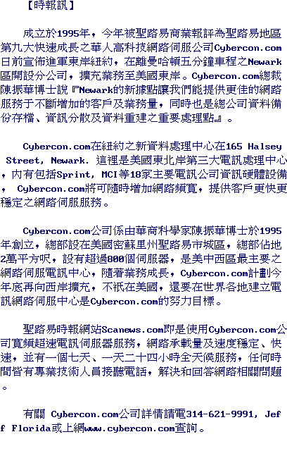 Cybercon is the Internet Service Provider of the St. Louis Chinese American News website - Scanews.com.