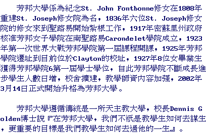(March 14, 2002) St. Louis, MO - President of Fontbonne College, Dennis C. Golden announced today that the institution has fulfilled the academic requirements necessary to change the name from college to University. The new name of the institution is Fontbonne