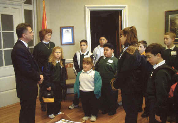 Lt. Governor Maxwell visiting with a group of school children from Kansas City in his office