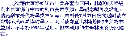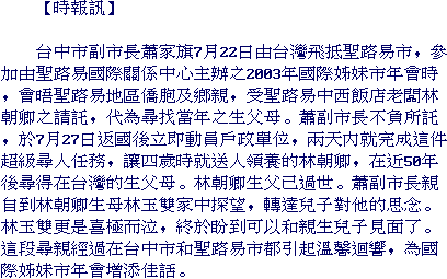 Through the help of Taichung Deputy Mayor Dr. James Chia-Chi Hsiao, St. Louis resident Paul Lin was able to contact his mother in Taiwan after being uncommunicative for more than 50 years.