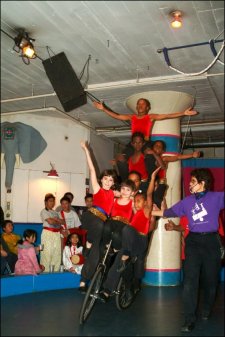 When I approached a young audience of the circus show, an eight-year-old boy, asking which program he liked best, he replied, "The unicyclists, of course!" He said he wanted to be the one who sat in the front of the unicycle.