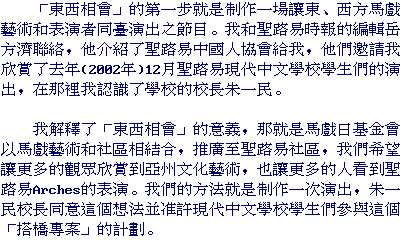 The second phase of Far East Meets Midwest was the production of a show bringing together Asian and Midwestern arts and artists. I talked with Francis Yueh, editor of the St. Louis Chinese American News. He connected me with the St. Louis Chinese Association. They invited me to the December show performed by students from the St. Louis Modern Chinese School. There, I was introduced to the school's principal, Yimin Zhu.